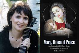 On this week's podcast, we highlight the lovely Mary, Queen of Peace Meditation Guide & Sung Rosary project by Susan Bailey. The Sung Rosary is a beautiful 6" x 9" 48-page full color book which includes a totally sung rosary on CD. The book contains scripture verses for each Hail Mary, sheet music for the sung prayers, and beautiful icons, paintings and stained glass windows to aid in your meditation.