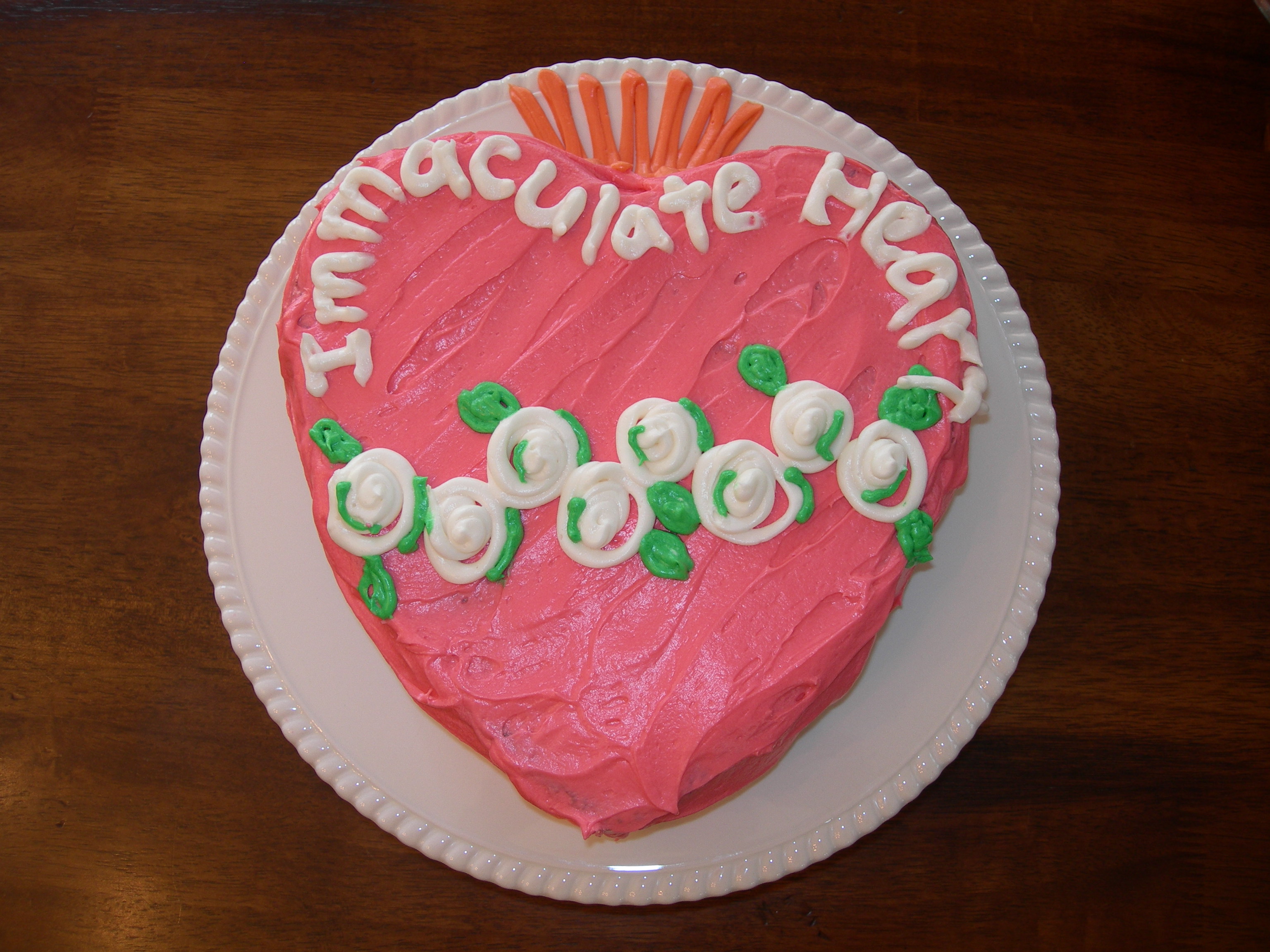 I wanted to share these pictures of the cakes I made for our Home Enthronement to the Sacred Heart of Jesus that my family recently celebrated. With the Sacred Heart and Immaculate Heart feast days rapidly approaching, I thought this would be a fun idea to share with your readers/followers.