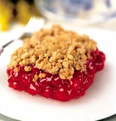 2. Drain cherries, reserving 1 cup liquid. Place cherries in a 2-quart round baking dish; set aside.