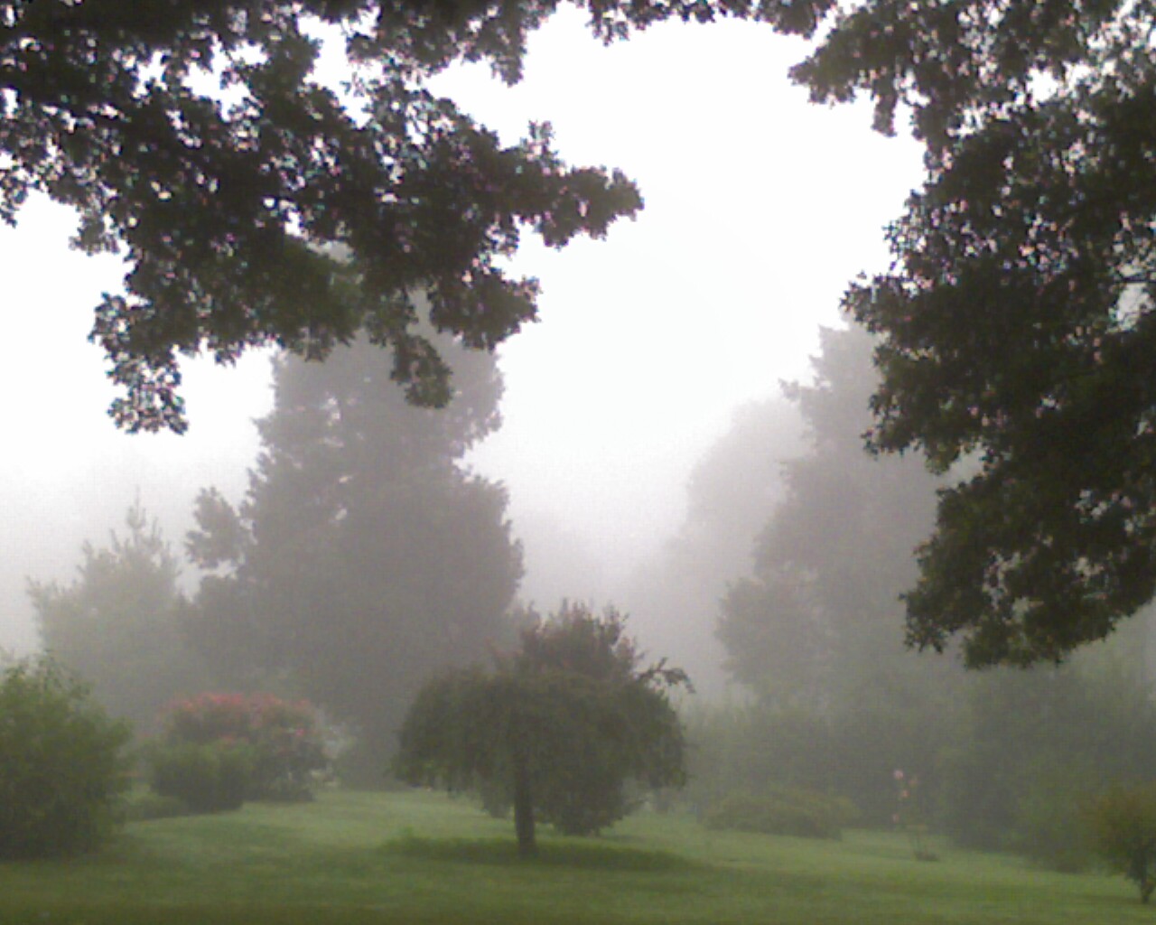 God is right there in the moisture of that cloud that surrounds you, He is also beyond the fog in the trees you cannot see for He has never moved from you since the day He created you He has been right there. Today as you stand in that fog that weighs you down take a few moments to be in silence listen to your heart, your mind and your soul and pray this thought over and over again until you know with faith that it is true: "Draw near to God and He will draw near to you."