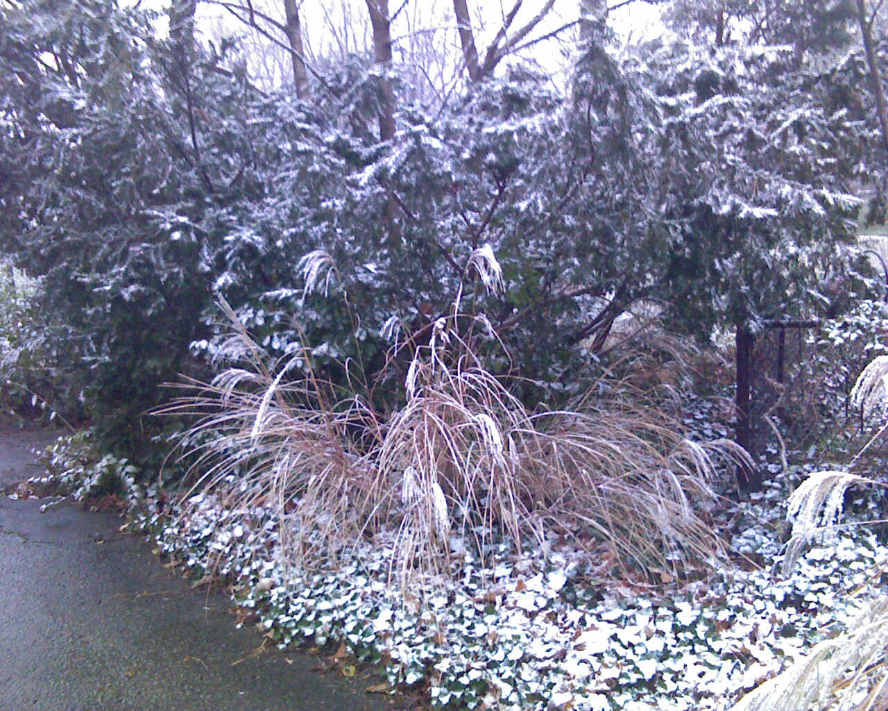 The snow just barely covered the ground and bushes but it was beautiful. There is something about snow that brightens everything, the white pristine color or just that it covers everything but hides nothing. Maybe that's how God loves us. He covers us in the pristine white of His Unconditional love for us but in doing so He gives us freewill, therefore He hides nothing with His love, the choice is still ours. His love covering our lives does not weigh us down but brightens our being, lifts us up and makes us beautiful for all the world to see. However the love of God does not hide the shape of who we are our personalities, the lives we lead or the choices we make. Just as through the thin covering of the snow you can still see that a bush is still a bush and the ivy is still ivy, physically the only change is the color and a bit of weight.