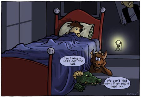 Thank God for the night light - that dependable guardian of safety- faithfully providing just enough illumination to keep the monsters at bay. Because we all know they just HATE the light.