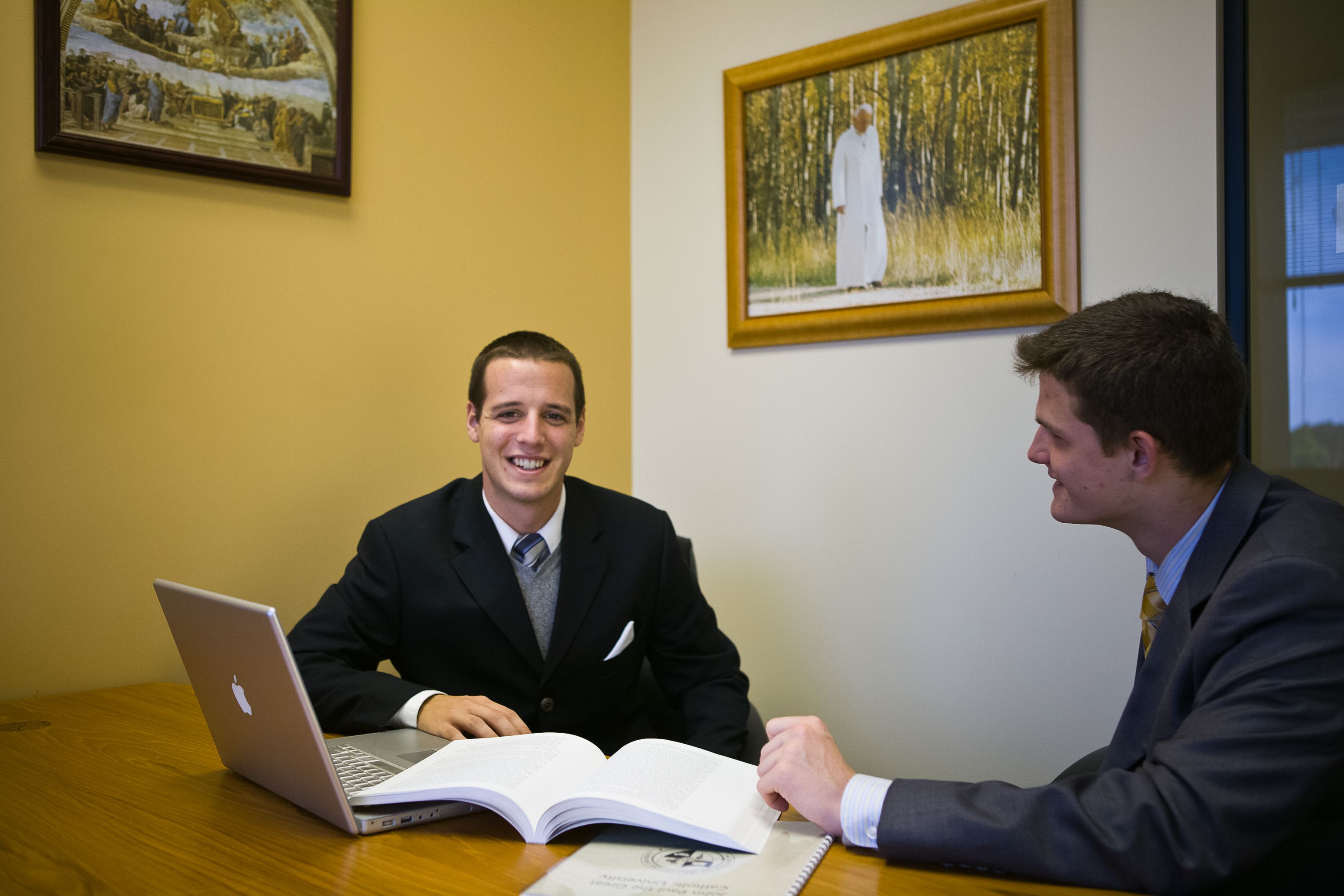 In the College Springboard program, juniors and seniors in high school can participate in entry-level JP Catholic courses on the internet to complement their current educational programs. The credits earned through taking these online courses will transfer into any of the university's undergraduate programs. This not only gives high school students the opportunity to start earning credits for college, but it allows them to learn the material from faithfully Catholic professors. Students living in southern California may even attend the classes with JP Catholic students, depending on classroom availability.