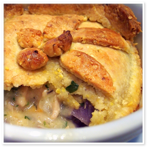 5. Meanwhile, prepare pastry. On a lightly floured surface, roll into a circle, about 1 inch larger than pie plate. Place over filling. Trim pastry and flute edge; cut several slits to allow steam to escape. Decorate top if desired. Brush surface with 2 teaspoons milk.
