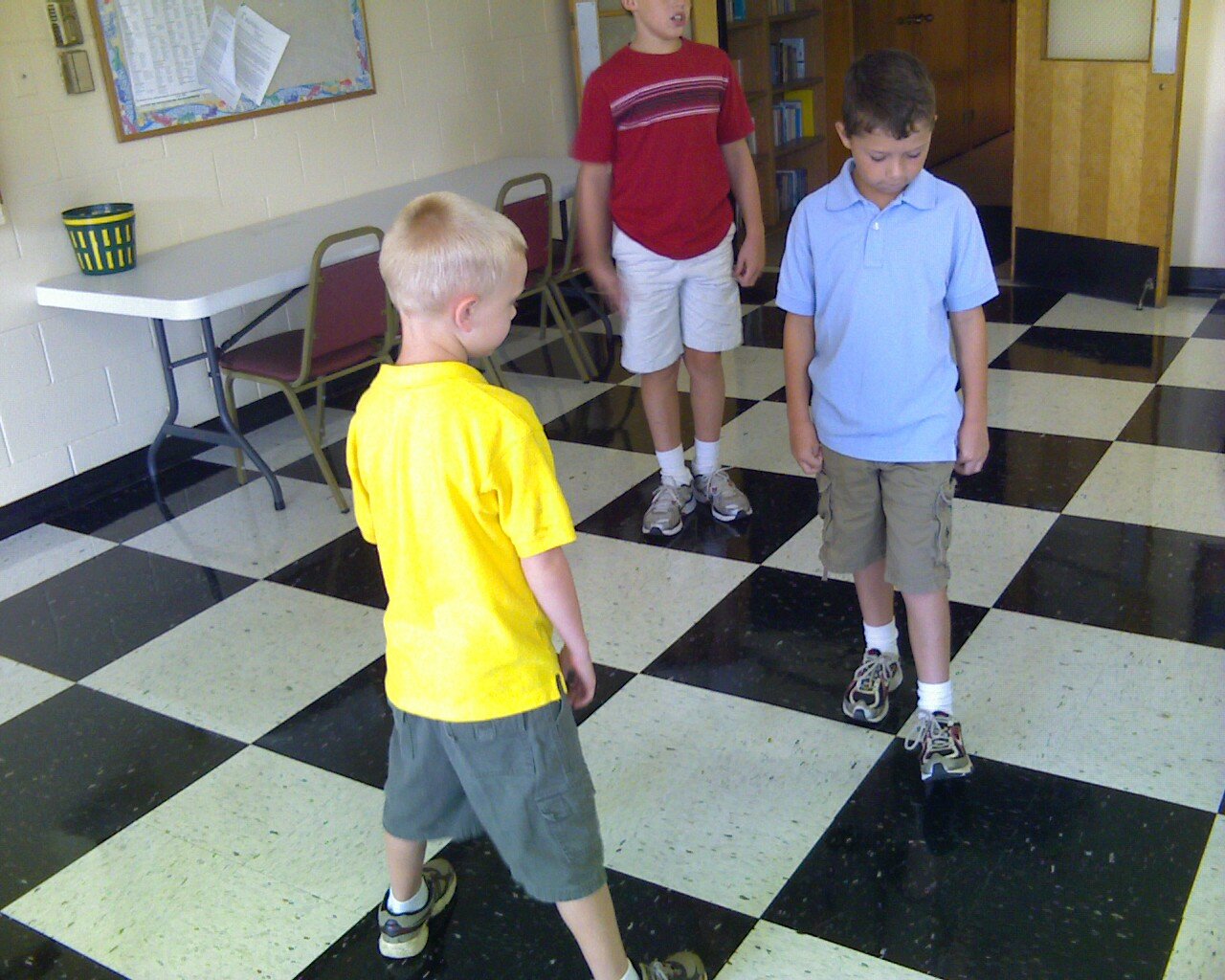 My children and the children I babysit have become so intrigued with checkers that when they saw this checkered floor they wanted to play human checkers. They faced off against each other moving from square to square cautiously weighing each move and the consequence it might have in the game. Trying to jump someone, advance on the board, become king and take all of the other's checkers and ultimately winning the game.