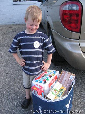 For my son's fifth birthday, we wanted to give him a "kids" party but didn't want to deal with all the toys he didn't need. He decided it would be okay to forego the toys and ask his friends to bring donations to a local organization, Kids Food Basket. I used to work with KFB back when I taught third grade, and they've been providing sack dinners for schoolchildren who might not otherwise have their third square meal of the day for almost 10 years.