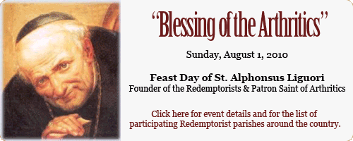 DENVER, CO, July 20, 2010...On Sunday, August 1, the Redemptorists, an order of Catholic priests and brothers, will be offering the first-ever, national "Blessing for Arthritics" after each and every Mass at their parishes and retreat centers across the country.