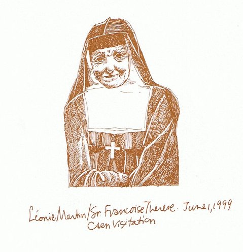 Later, at the age of 30, while three of her sisters: Marie, Pauline and Thérèse were thriving at the Carmelite Convent in Lisieux, Léonie attempted to enter the Visitation Order in Caen again. Intriguingly, Céline had become accustomed to Léonie’s companionship and help and felt a sad grief when this "lioness" sister left. This time, Léonie remained at the monastery for two years. It was during this two year time frame that the girls’ father passed away. Just a month and a half after Monsieur Martin’s passing Céline entered the same Carmelite Convent as her three sisters. About one year later, Léonie once again left Caen and returned to Lisieux to live with relatives ... by now, both of her parents were deceased and all four of her sisters were at the Carmelite Convent.