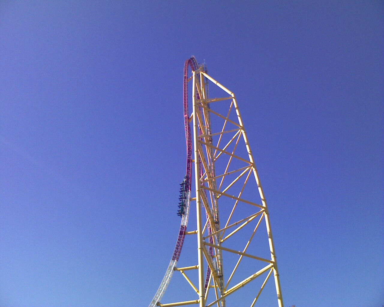 My husband and I just took a weekend trip, just he and I, to Cedar Point Amusement park. We have wanted to go for years. It is one of the best roller coaster parks in America. So we finally did it. My son doesn’t care for coasters, will not get on one but he has read everything about them. He loves reading and learning about coasters. Before we left he told me all about the coaster you see in the picture above. It’s called Top Thrill Dragster, it takes off from 0 – 120 mph in 6 seconds on a straight track then climbs this arch to 410 feet and then drops you down a corkscrew and you descend rather quickly. The entire ride only lasts 17 seconds. I told him I would do it before I left home.