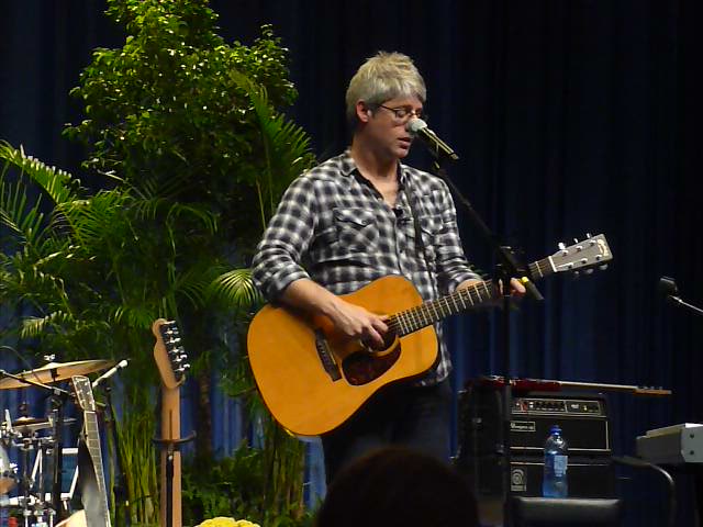 Matt Maher and his band (Kemi Ndolo, Kenny Butler, and Coltan Gatlin) performed this past Friday night at the University of Dallas Ministry Conference. The crowd was alive and full of energy as Maher opened with Your Grace Is Enough followed by Alive Again, which is his recent hit single on the Contemporary Christian music charts. Maher, who earned a Bachelor of Music in Jazz studies at Arizona State University, plays with rhythm, meter and chord structure to create unique melodies with a fresh sound. He uses a variety of music styles ranging from klezmer (traditional Jewish dance music) to R&B and Gospel, creating an eclectic and well- balanced repertoire. He couples his musical talent with beautiful lyrics to deliver a message of love and hope subtlety interlaced with Catholic teachings and theology. During the course of the concert, Maher shared his witness of how Christ has touched his life while challenging the audience to reflect and engage Christ in their own lives through ballads such as Lay It Down, Letting Go and Garden. The Holy Spirit was present and moving in the atmosphere of love and surrender created by this talented musician and his equally talented band. To finish off the night, Matt played the keyboard before switching back to guitar for a moving and celebratory performance of CChrist Is Risen.