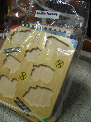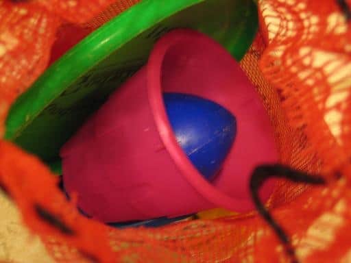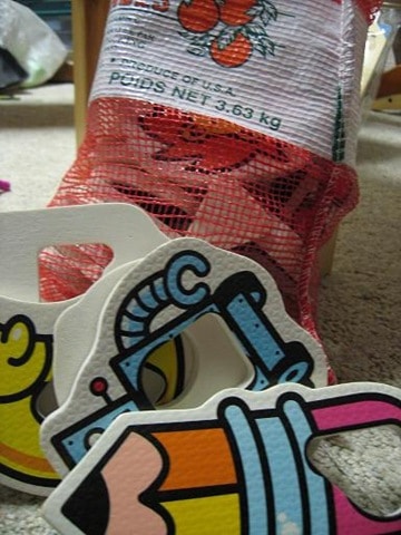 4. We always buy big bags of grapefruit this time of year. Keep the bags for sure - they're great for foamy puzzles, and even more appropriate for sand toys (the sand falls right out instead of piling up in the bottom of the bag):