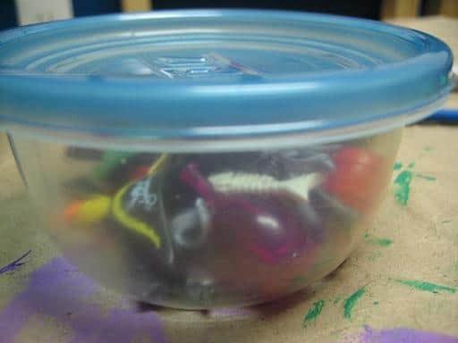 2. Those plastic containers that you moved away from when you found glass containers can be reused to store little toy sets, like these piratey things:
