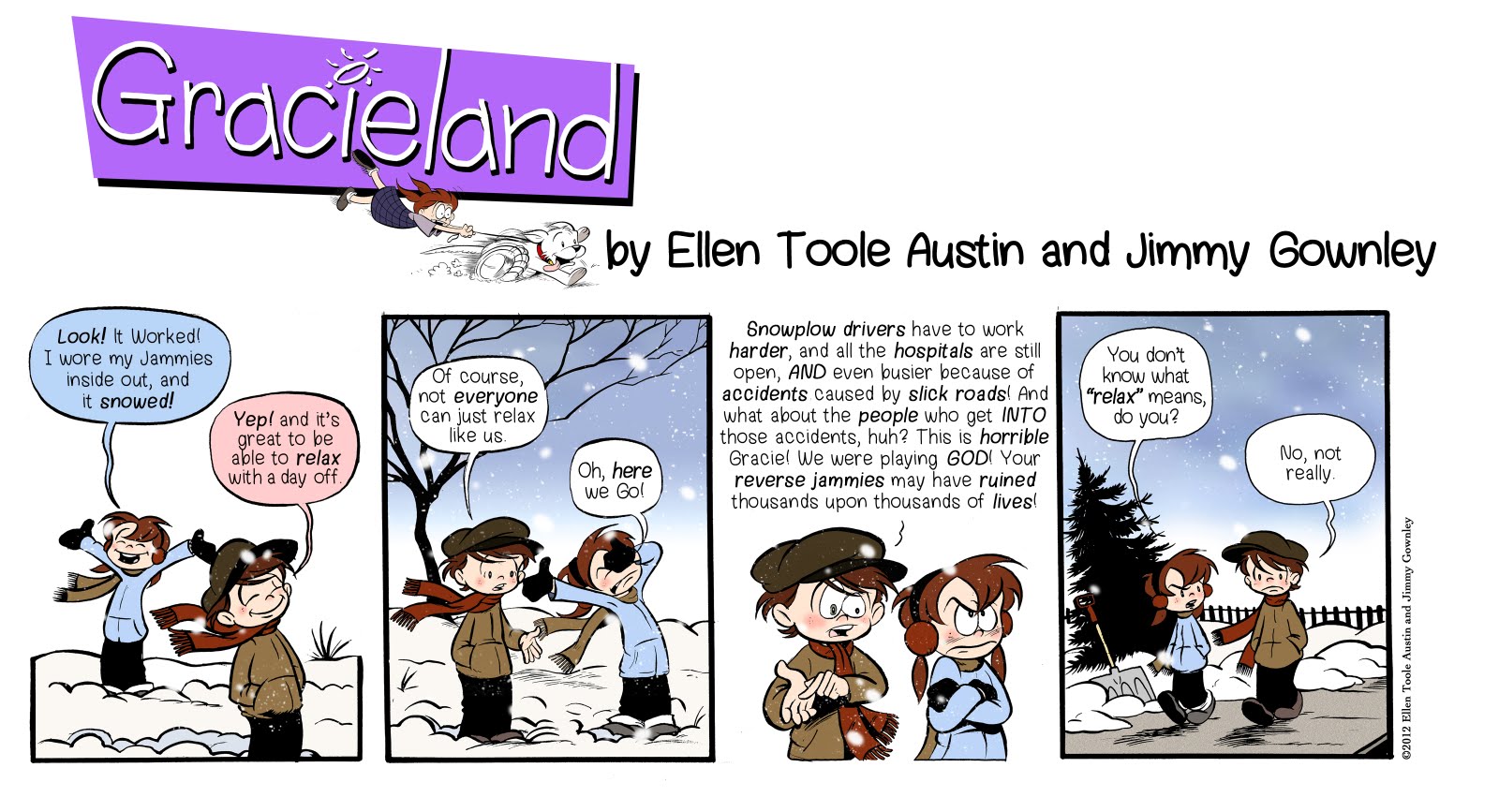 Editor’s Note: We're back for another adventure with Greetings from Gracieland, our fantastic new webstrip from Jimmy Gownley and Ellen Toole Austin. Along with the comic, you’ll find “Table Talk”, a terrific conversation starter to share with your children. Be sure to visit the Greetings from Gracieland website at www.GreetingsFromGracieland.com for more fun and inspiration with Gracie and join us here each Thursday morning for a new feature! LMH