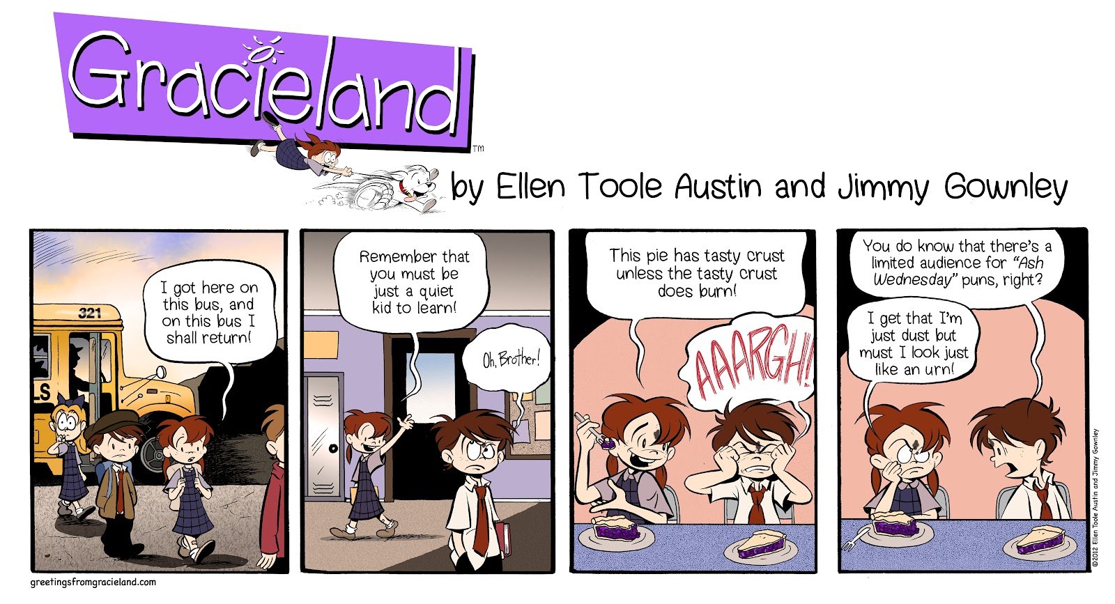 Editor’s Note: More fun this week with a brand new Greetings from Gracieland, our fantastic new webstrip from Jimmy Gownley and Ellen Toole Austin. Jimmy and Ellen have graciously agreed to share their talents with our readers for a feature I know your whole family will enjoy! Along with the comic, you’ll find “Table Talk”, a terrific conversation starter to share with your children. Be sure to visit the Greetings from Gracieland website at www.GreetingsFromGracieland.com for more fun and inspiration with Gracie and join us here each Thursday morning for a new feature! LMH