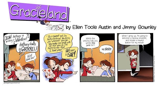 Editor’s Note: We hope you enjoy this week’s Greetings from Gracieland, our fantastic webstrip from Jimmy Gownley and Ellen Toole Austin. Along with the comic, you’ll find “Table Talk”, a terrific conversation starter to share with your children. Be sure to visit the Greetings from Gracieland website at www.GreetingsFromGracieland.com for more fun and inspiration with Gracie and join us here each Thursday morning for a new feature! LMH