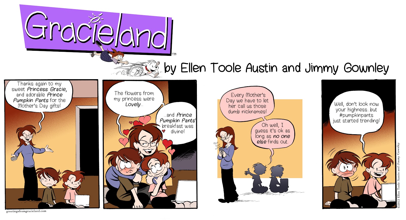 Editor’s Note: We hope you enjoy this week’s Greetings from Gracieland, our fantastic webstrip from Jimmy Gownley and Ellen Toole Austin. Along with the comic, you’ll find “Table Talk”, a terrific conversation starter to share with your children. Be sure to visit the Greetings from Gracieland website at www.GreetingsFromGracieland.com for more fun and inspiration with Gracie and join us here each Thursday morning for a new feature! LMH
