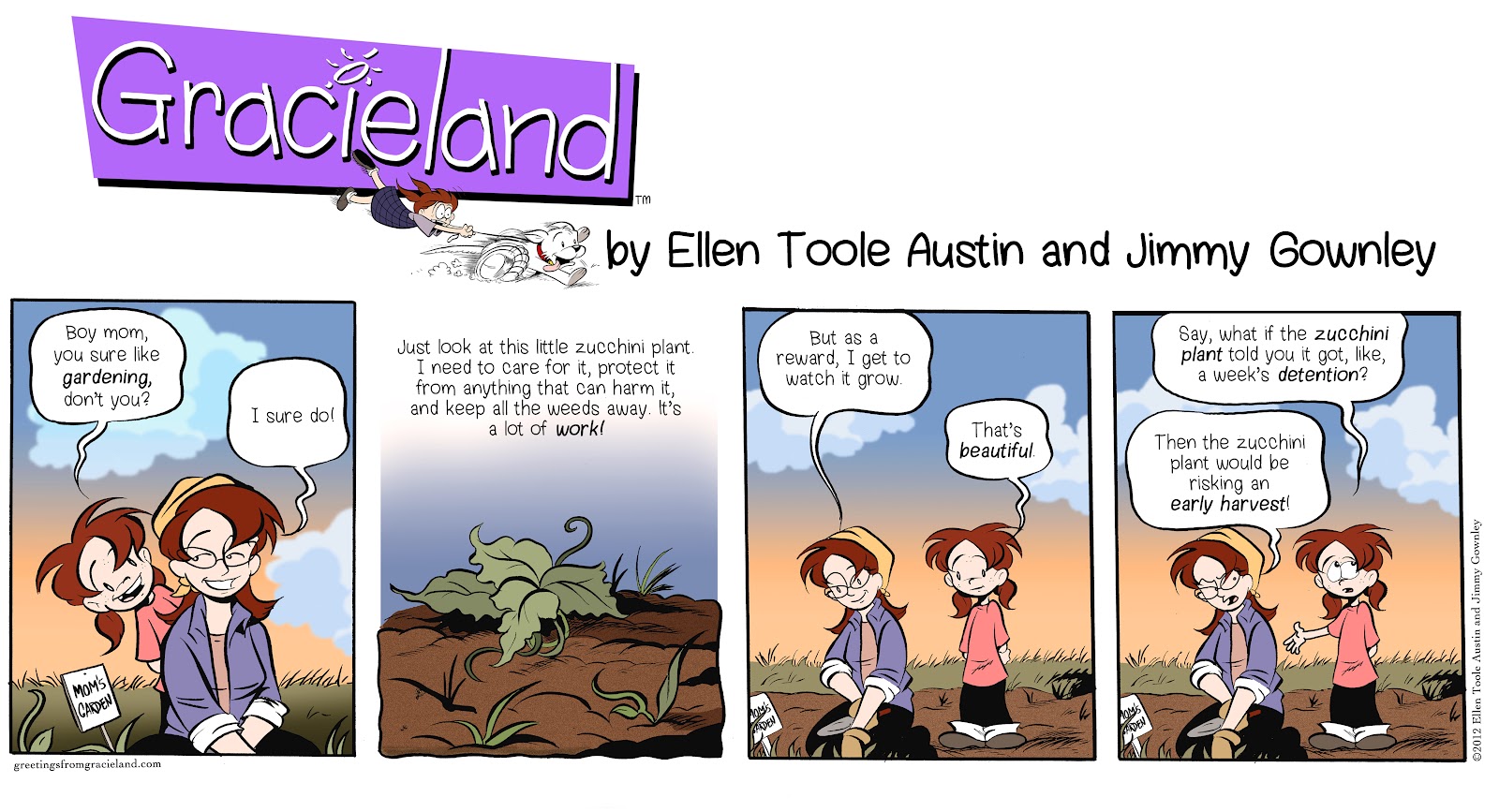 Editor’s Note: We hope you enjoy this week’s Greetings from Gracieland, our fantastic webstrip from Jimmy Gownley and Ellen Toole Austin. Along with the comic, you’ll find “Table Talk”, a terrific conversation starter to share with your children. Be sure to visit the Greetings from Gracieland website at www.GreetingsFromGracieland.com for more fun and inspiration with Gracie and join us here each Thursday morning for a new feature! LMH