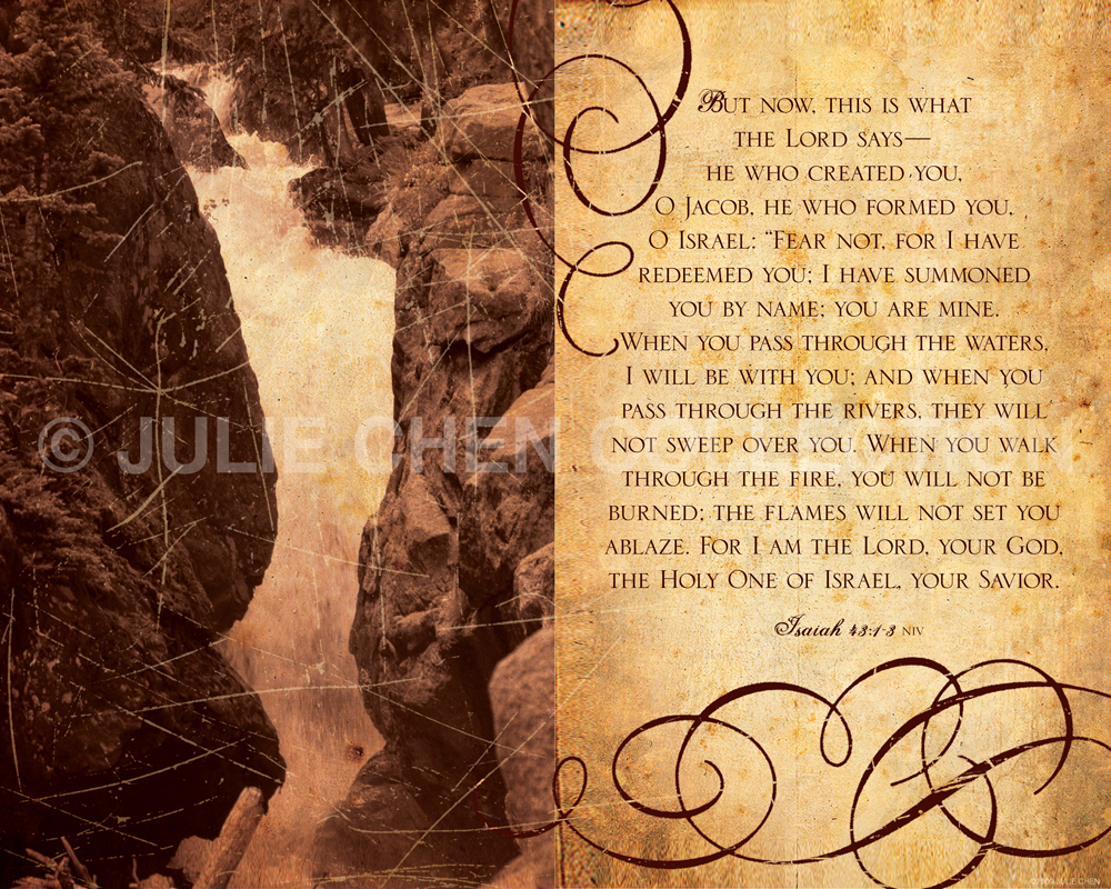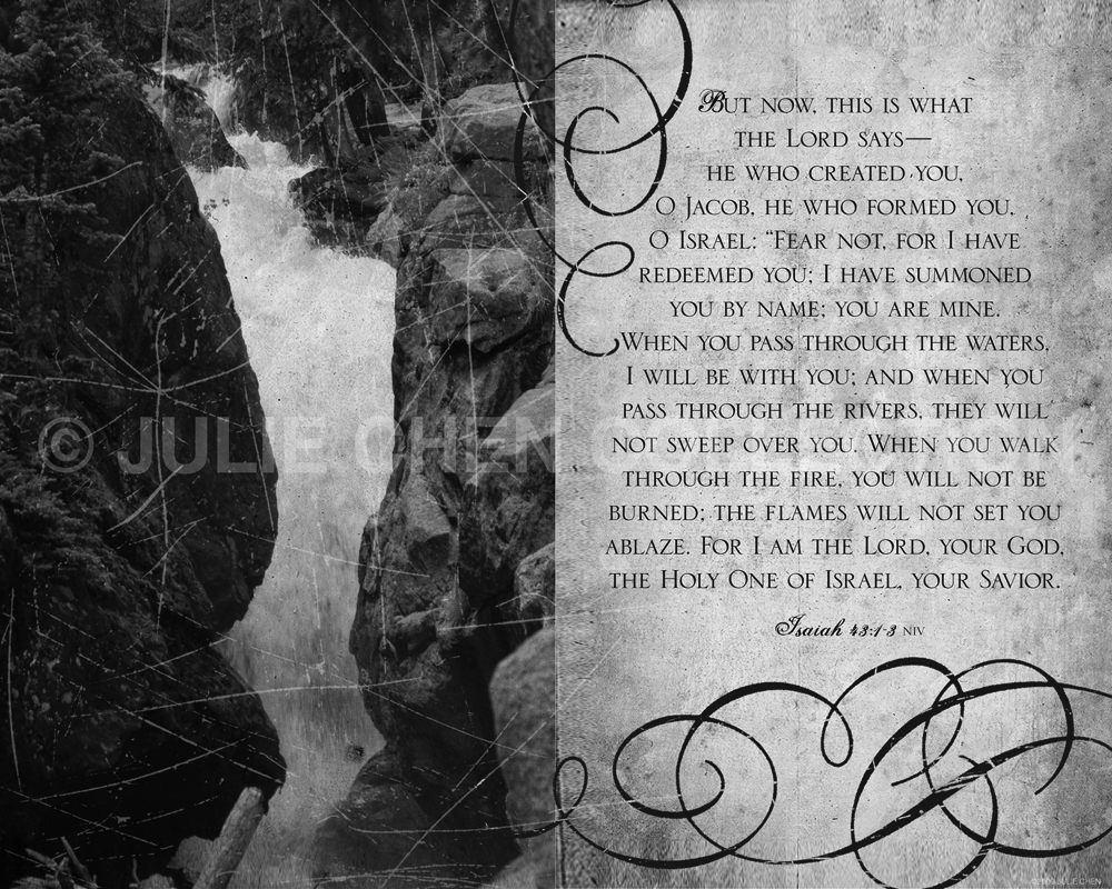 My 2 friends I mentioned above had actually told me separately how much this passage from Isaiah has gotten them through their trials, so this morning instead of doing "work", I decided to create art to encourage their hearts & hopefully help them to press on and see God's great love for them and the fact that He truly is their Savior and Lord, carrying them through the flames and fire.