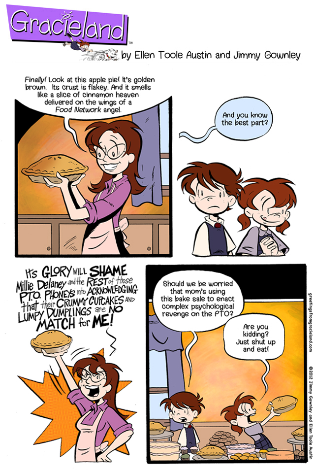 Editor’s Note: We hope you enjoy this week’s Greetings from Gracieland, our fantastic webstrip from Jimmy Gownley and Ellen Toole Austin. Along with the comic, you’ll find “Table Talk”, a terrific conversation starter to share with your children. Be sure to visit the Greetings from Gracieland website at www.GreetingsFromGracieland.com for more fun and inspiration with Gracie and join us here Thursday mornings for a new feature! LMH