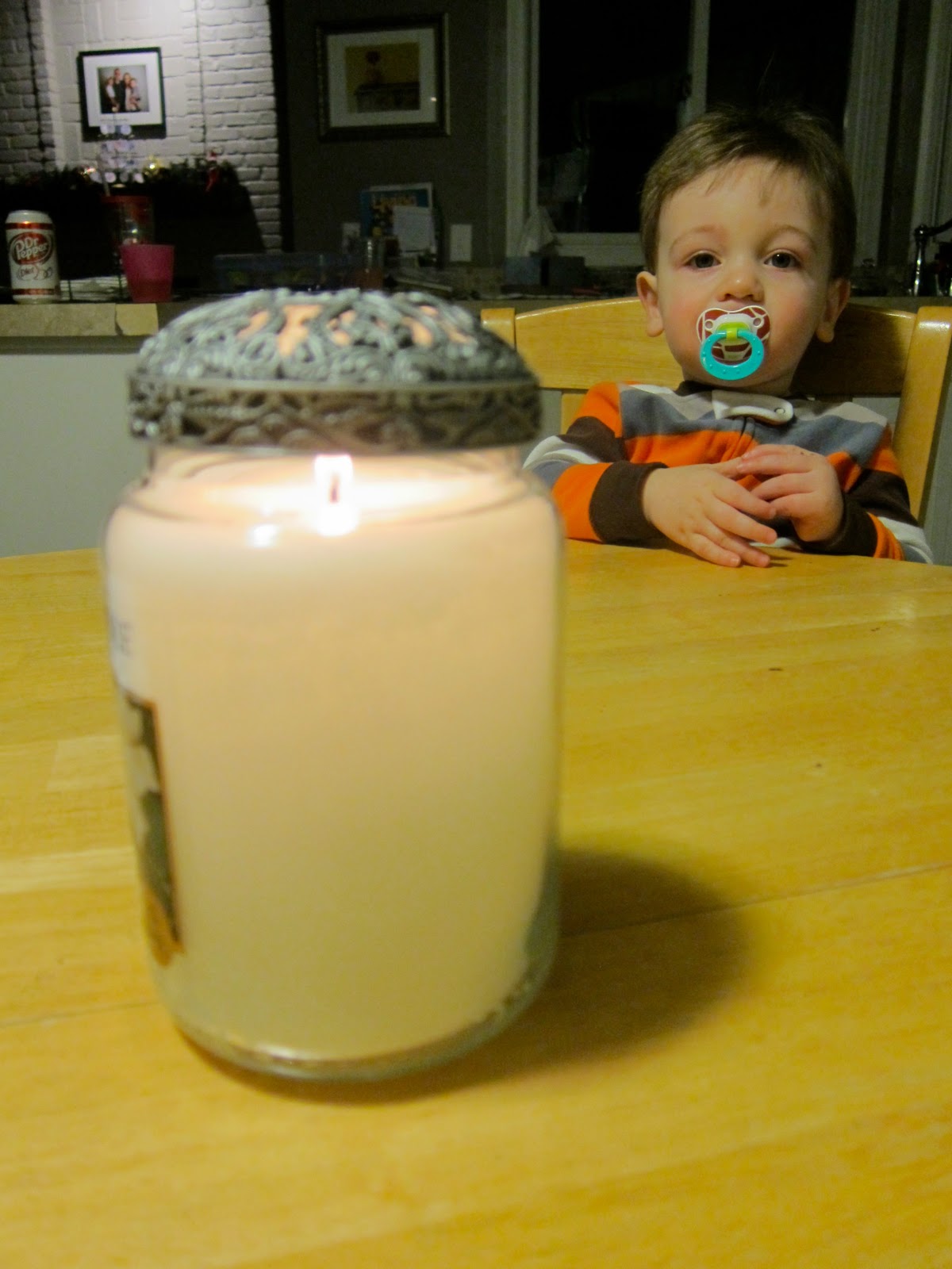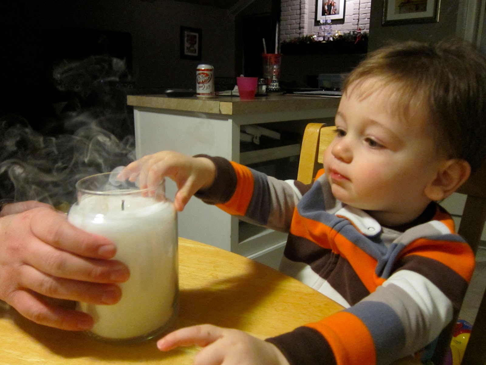 After Janie blows out the candle, Walt loves to wave the smoke around with his pudgy little hands.