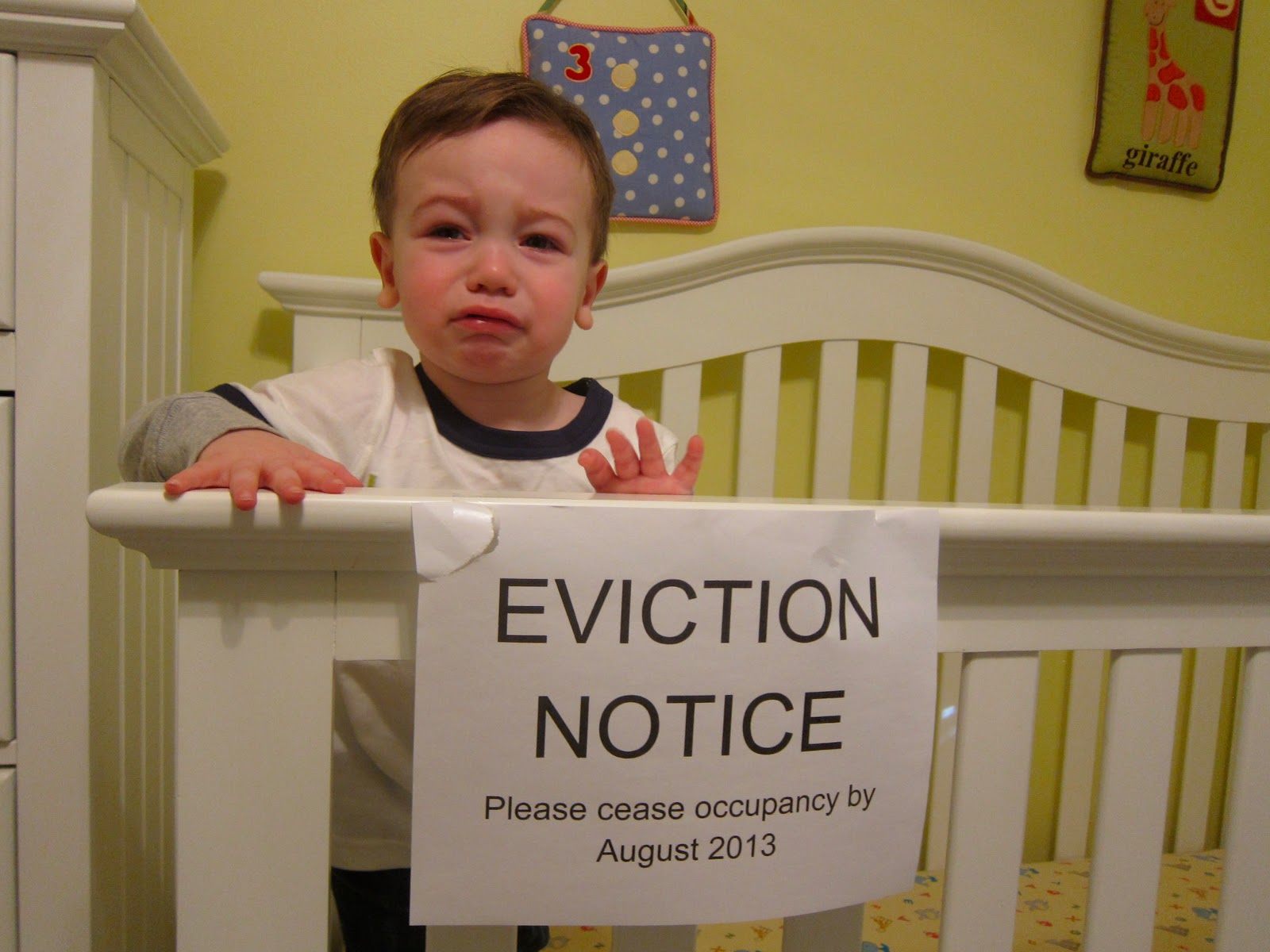 After receiving confirmation that Baby was okay and that everything looked great, we decided to share the news with the rest of our friends and extended family. We posted this picture of Walt getting an "Eviction Notice" from the nursery on Facebook. He was ready for his morning nap, and we took his pacifier away, so it was easy to capture a sad pout from him.