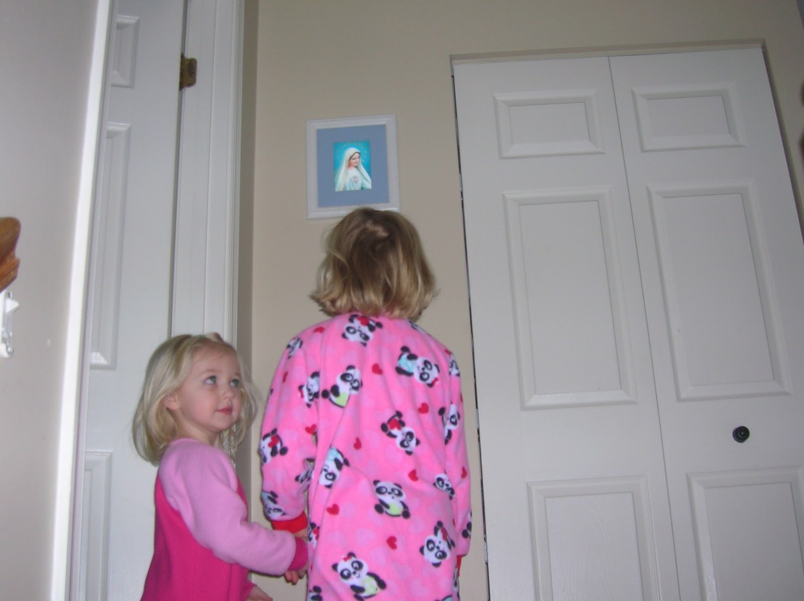 I wrote another story on my blog about the picture above. My 6-year-old daughter, Gianna, often stops and prays at this picture of Mary located in our upstairs hallway. I captured this moment of Gianna praying, and Cecilia (age 3) holding her big sister’s hand and watching/listening intently! I loved watching this moment. I felt so happy to see my daughters praying to their mother. I know that she will always be there for them; and unlike me, she will never let them down!