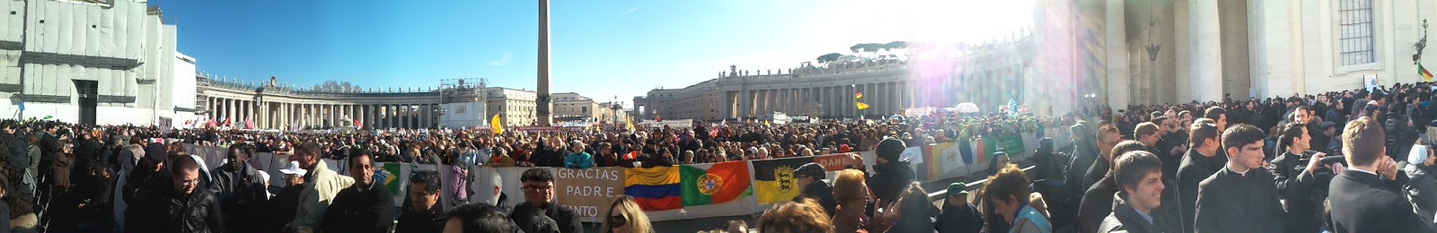 What does Benedict think as he looks out over the Square and see thousands of pilgrims waving flags from almost every country on the face of the earth? It's exactly the same enthusiasm, joy, and hope as 8 years ago and yet so very different. Problems still face the Church and the world, but at the same time, the Church is, alive, young, vibrant, and growing.