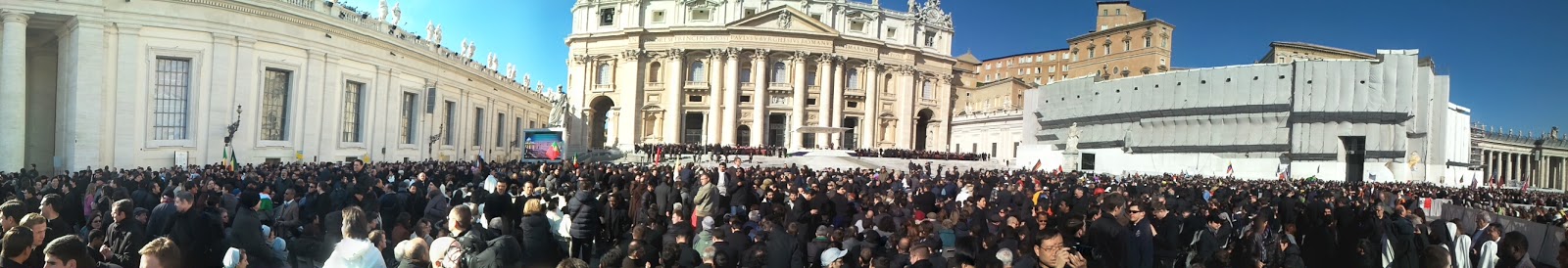 Sitting in St Peter's and praying my rosary today, I couldn't help but think back eight years. I wasn't in Rome at the time for the election of Joseph Ratzinger as Benedict XVI in 2005. Still it seems like yesterday I was at our seminary in Ireland staring at a little chimney which suddenly started to spew white smoke - a historic moment! Today was one more in that series of spiritually earth-shaking moments in the Church and the world.