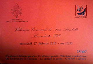 Today was Benedict XVI's last general audience, and the reading was from St. Paul's letter to the Colossians. Faith lived in fidelity necessarily bears fruit.