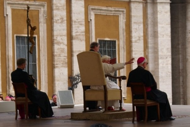 Our view from our seats during the papal audience. We were so close to the Holy Father! |