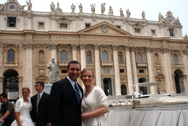 One of the first things we planned together was our honeymoon in Rome. We decided if we could swing it financially, we wanted to start our marriage in the Eternal City with a papal blessing. We thought it was only fitting that we start our marriage with a blessing from Pope Benedict XVI, the man who started leading the Church as we started our relationship. With our airfare taken care of by Philip's parents' air miles, we were able to make it work! Hooray!