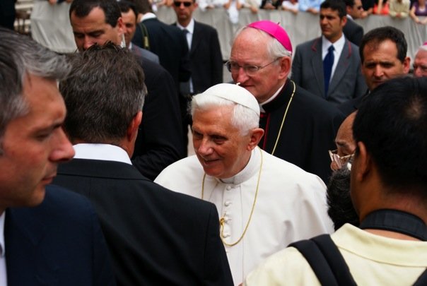 Despite the weight of his office, Pope Benedict exuded a deep peace. It was beyond me how anyone could gaze upon his face, hear his words, and come away calling him "God's Rottweiler." I desperately wanted to hug "Papa Bene," kiss his ring, and thank him for his sacrificial service in love of the Church. We weren't able to get that close, but gazing upon his face and seeing his love for each person he met left an impression on me that I will never forget.