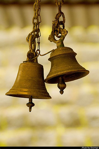The one part of church that my toddlers have always enjoyed is the sound of bells ringing at the moment that the priest consecrates the host. If the kids were feeling bored or tired of sitting still, I could always whisper to them, right then, "Shh! Can you hear the bells ringing? Jesus is here in the bread!" And a few minutes later, "Shh! Did you hear the bells? Jesus is here in the wine!" Sometimes, the kids would respond with a wise, open-eyed nod or maybe a single word spoken sotto voce, "Jee-jus!"