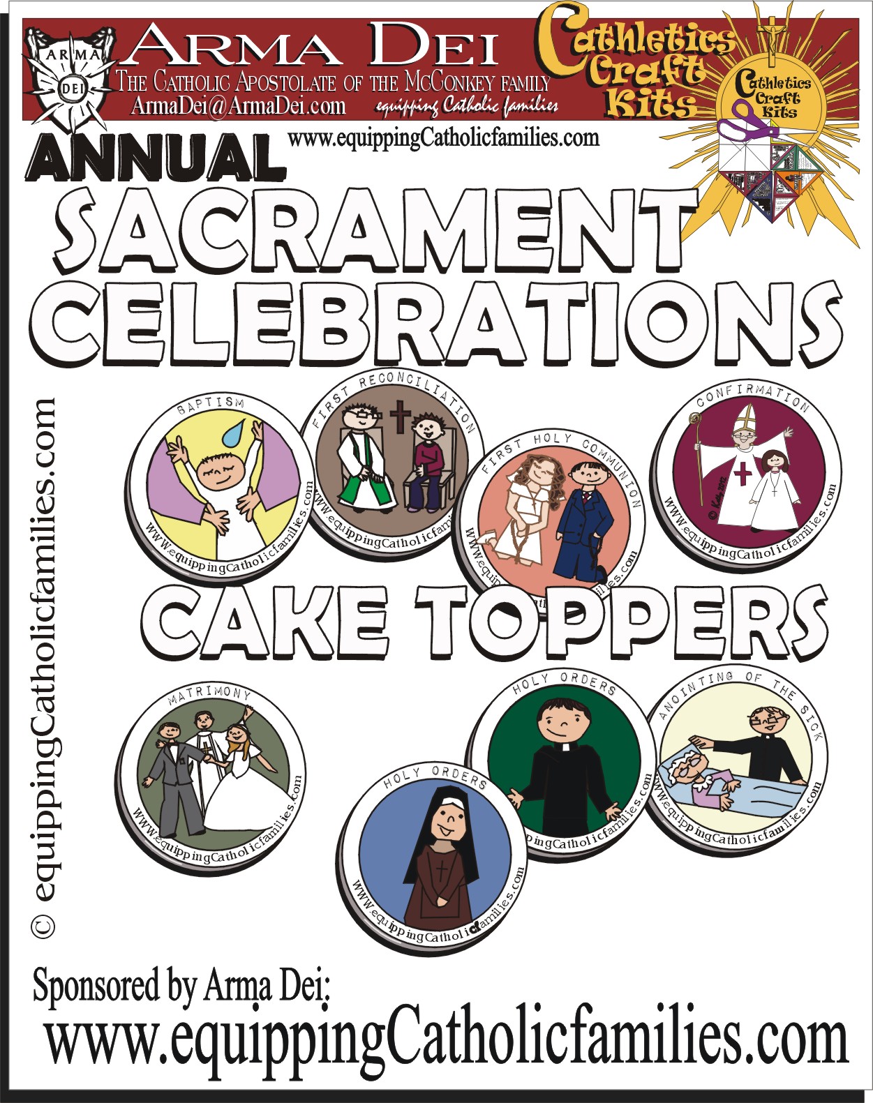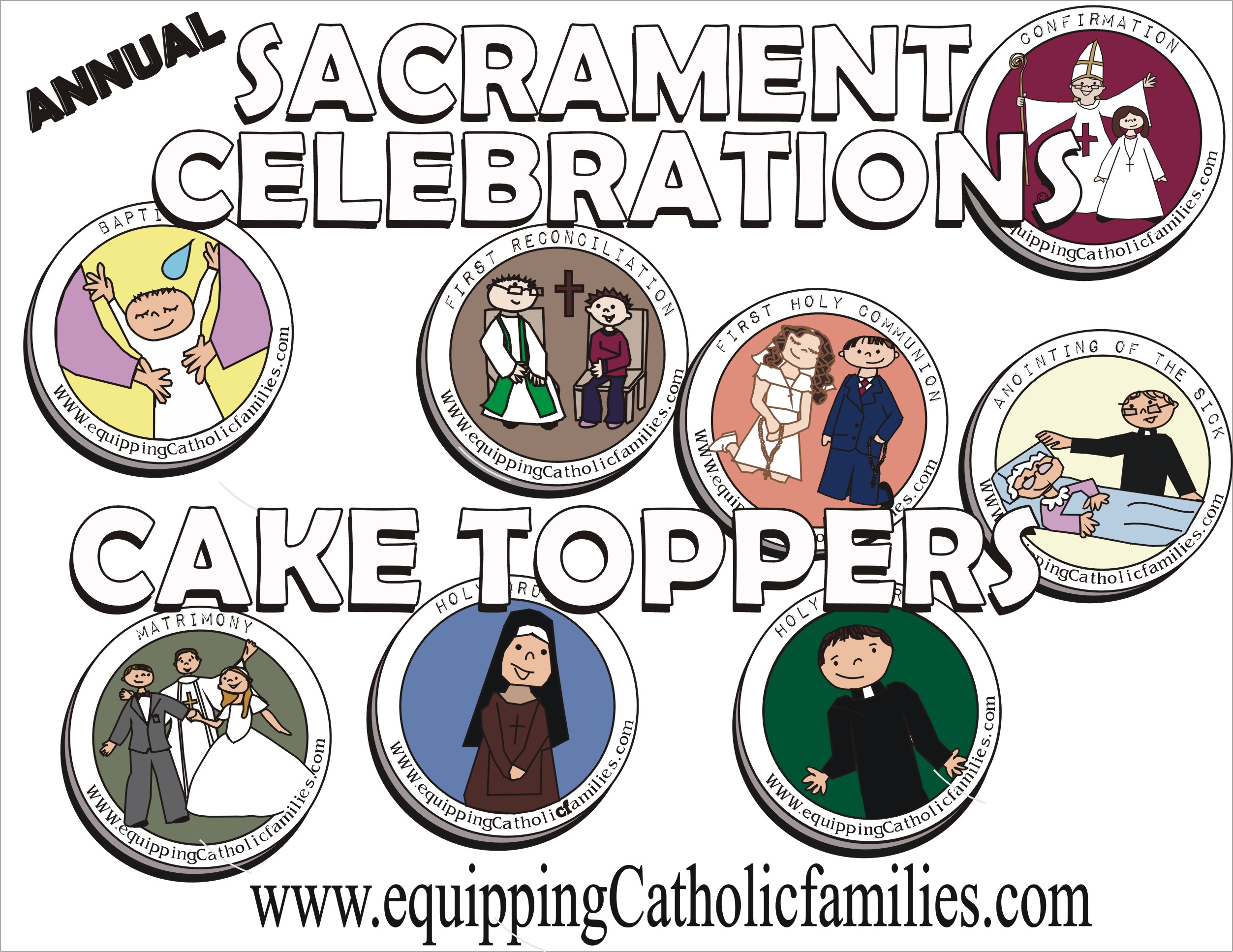 FREE Sacrament Celebrations Cake Toppers PRINTABLE: With templates offering 24 full-color Cake Toppers filled with Kelly Comics illustrations of the Sacraments and a child's journey with Jesus, you can easily customize a store-bought cake or cupcakes or the dining table to the Sacrament theme for the month! Check out our recent Sacrament Series posts: Sacrament activities to actively celebrate these special moments of Grace: Journal the Sacraments and Scrapbook the Sacraments! (additional FREE printable available!)