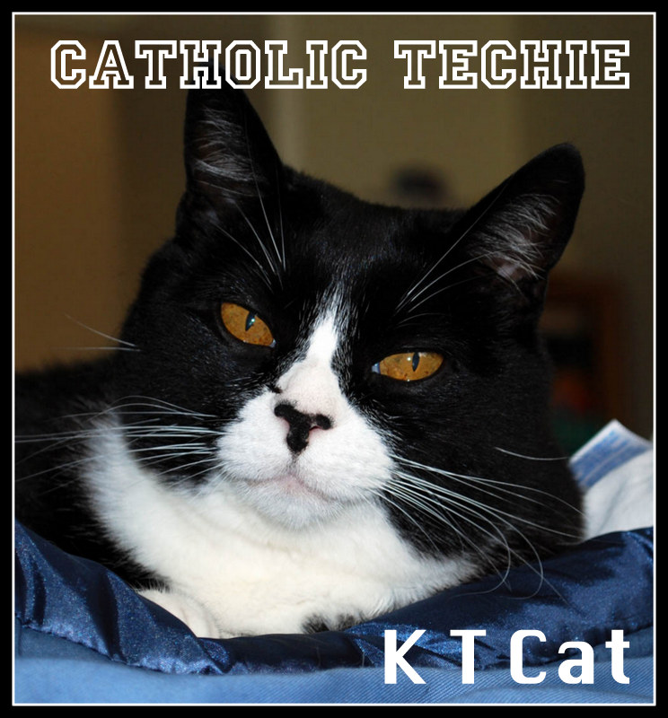 This is our first Catholic Techie who won't even tell me his real name though we've been acquainted for years and though I'm conducting this interview. I might, in fact, be disinclined to interview K T Cat, except I know he's a real guy (or a real cat?). I can respect the not-sharing-your-name thing, especially when it's done as well as he's doing it.