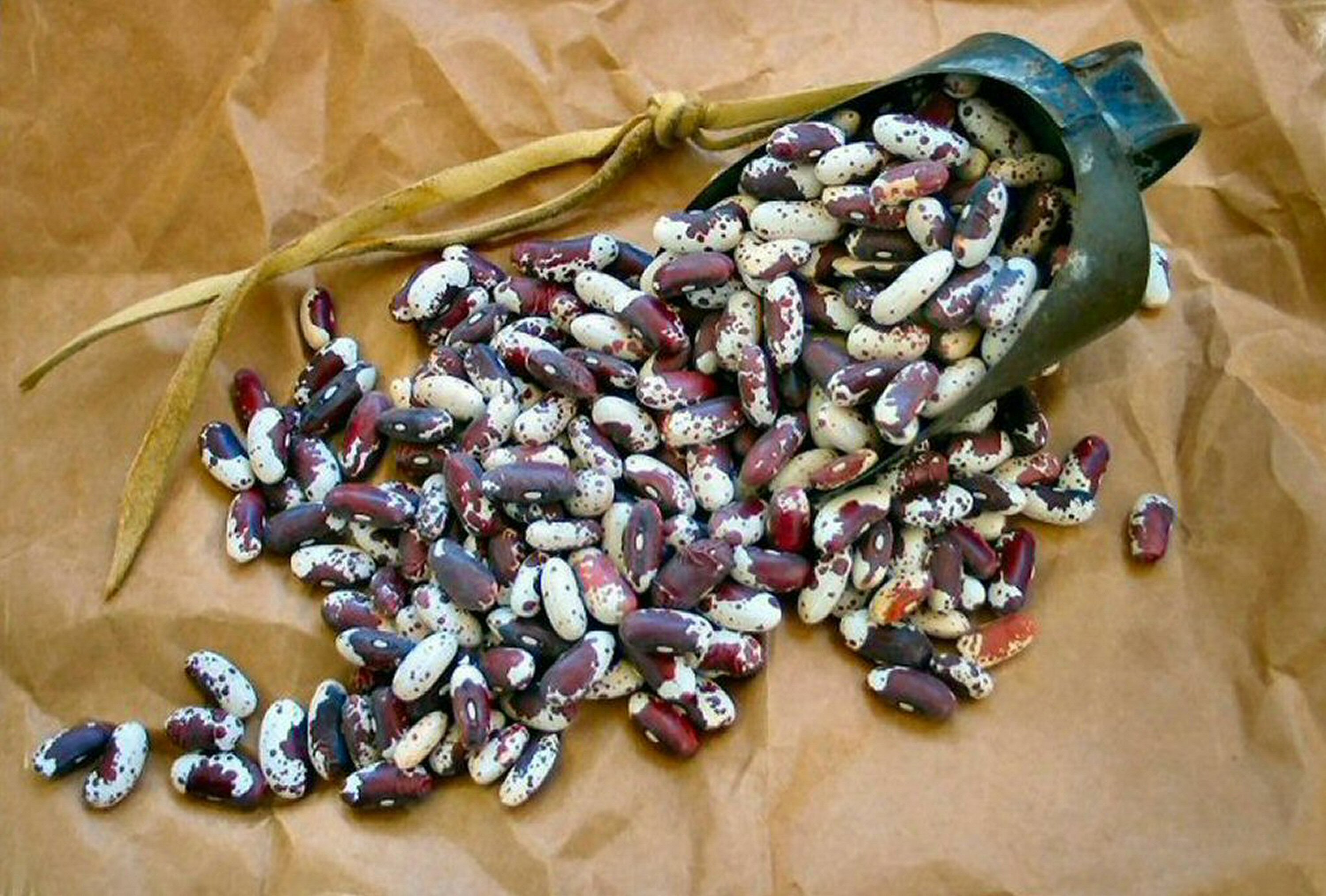 My fascination with dried beans goes back to childhood when I would stir the farm market's bins of seeds with my hands. That enchantment is still with me fifty years later. A two-gallon apothecary jar contained Painted Pony beans, coppery-brown with speckled white rumps. There were three two-quart mason jars filled with shiny black Turtle beans that have a white dotted midpoint; I had planned to create a small mosaic-like plant stand with their little dots facing up. I also had jars of magenta striped Crimson beans, large Limas, and chocolate-on-honey Pinto beans.