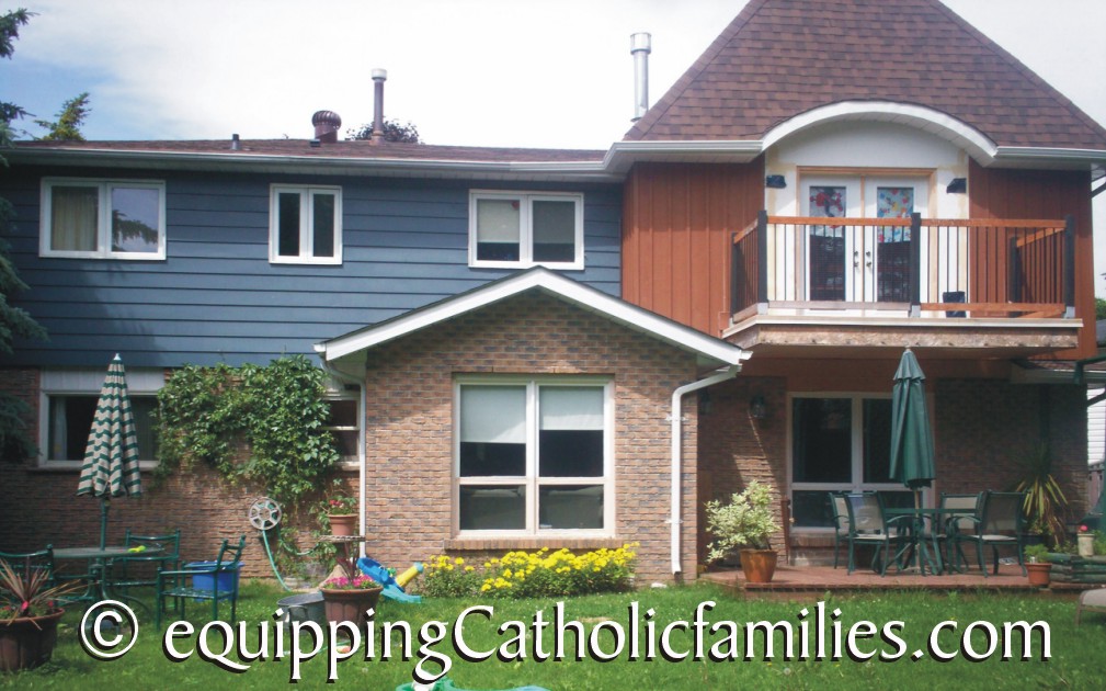 3. A few years ago, we built an addition...and it's our 'wing'. It's an office for Arma Dei, along with our bedroom, balcony looking over the backyard and an ensuite with a nice jacuzzi tub. We have on occasion had our own special dinner for two, beside the fireplace or sitting on the balcony.