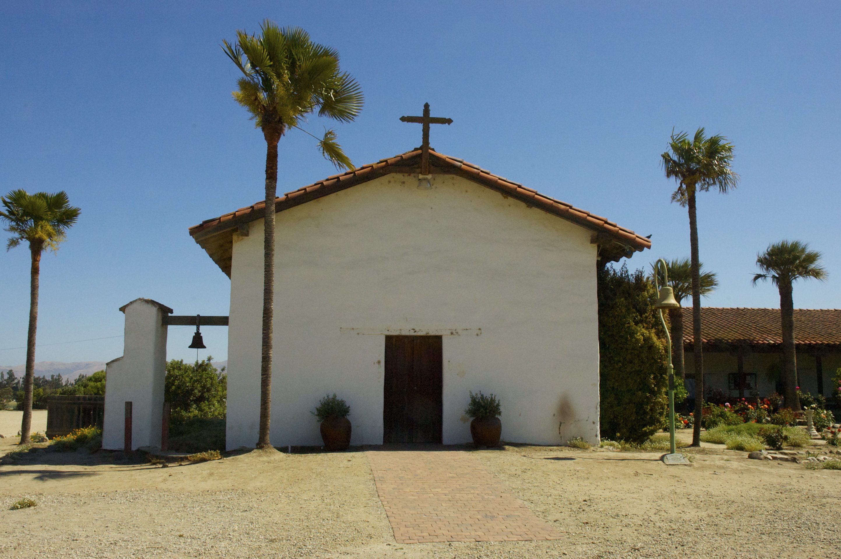 Soledad lives up to its name. It retains the look and feel of a lonely and desolate outpost. The Mission grounds are composed mostly of hard clay soil. An outbuilding and caretaker’s mobile home are the only other structures. Out front there is a modest lawn, flowerbeds and an impressive collection of roses. Although the countryside that surrounds the Mission is green and fertile, the grounds themselves seem barren and desert like.