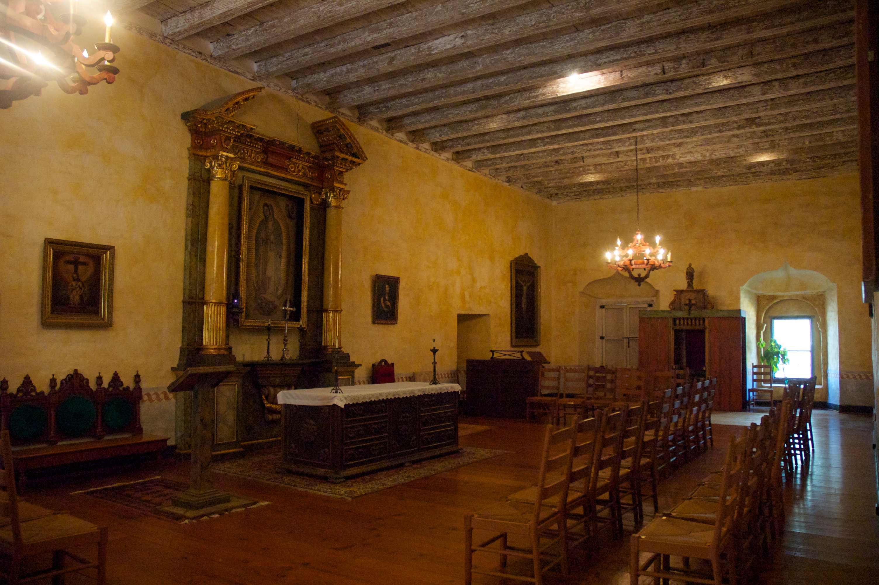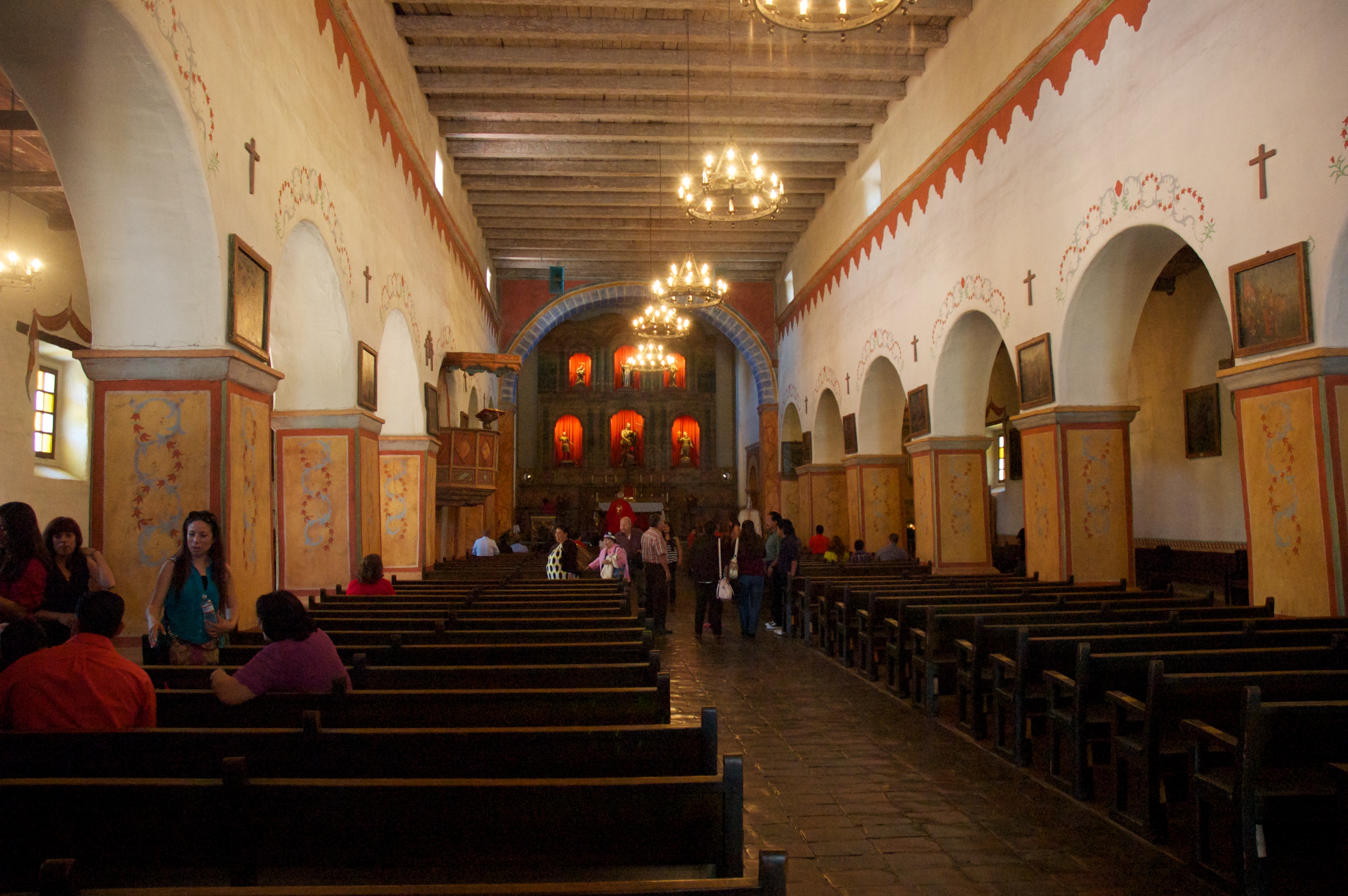 Once Mass was out, we had a chance to tour the church itself. Largest of the California Mission churches, the interior feels both humble and grand at the same time. As the current church was being built in the early 1800's the design was revised to include two sets of arched walls to the church interior for greater strength against earthquake damage. This makes for a long, narrow worship space, but has created open devotional space on each side.