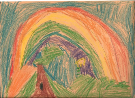 The colors were chosen, the crayons were held by fat little fingers, the idea began to spread from his mind to the paper, and the picture came to life on a plain piece of paper and slowly but surely there became a rainbow.