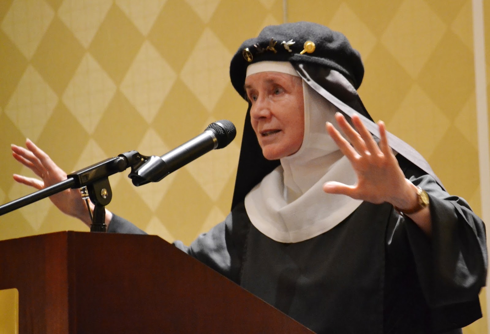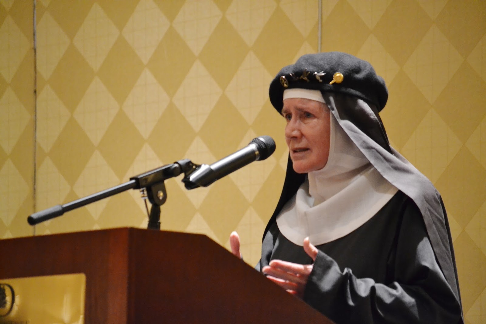 Mother Dolores Hart, speaking before a crowd in Somerset, N.J.