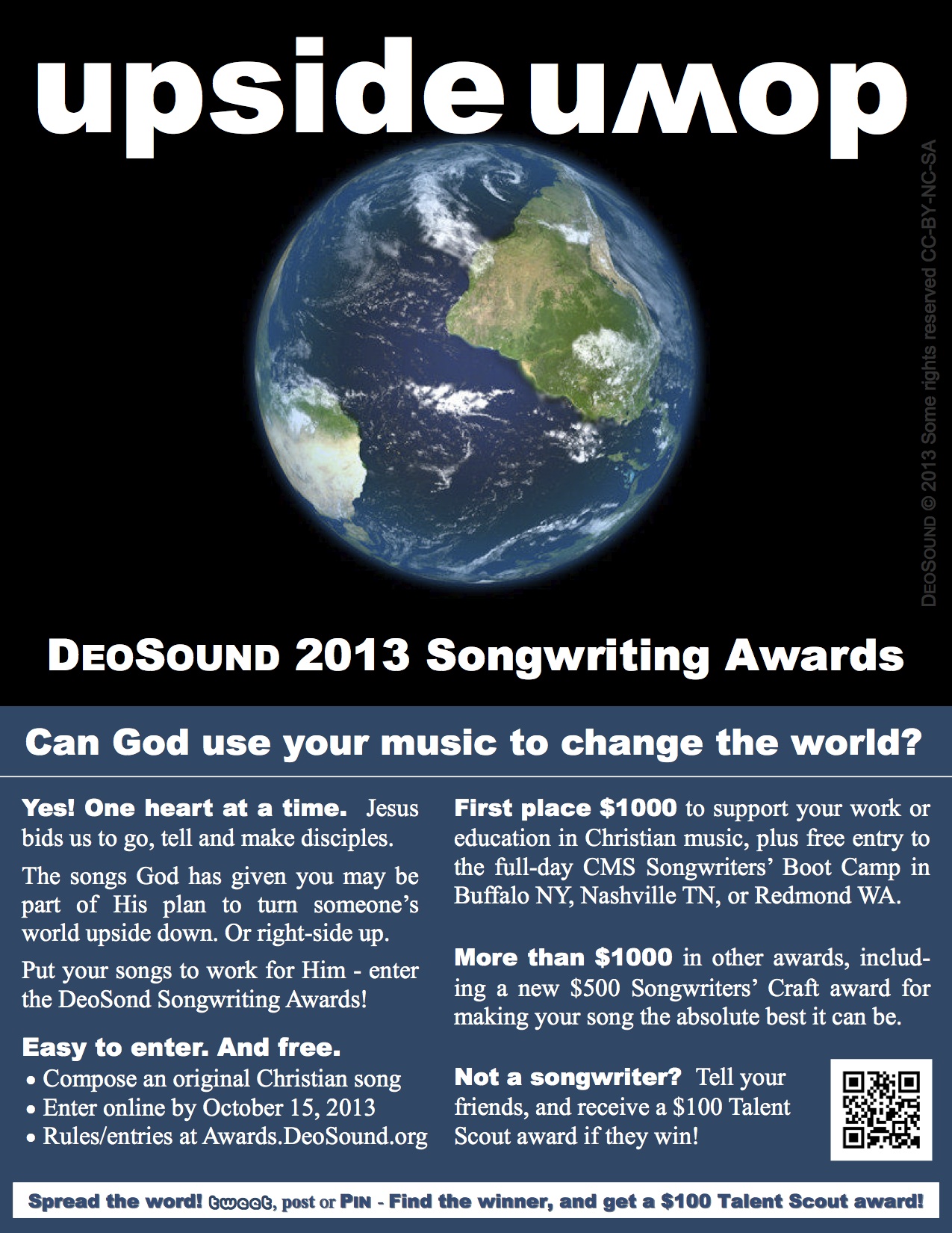 Christian songwriters who want to say "Amen!" to that can enter their songs at Awards.DeoSound.org. Entry is free, and open until October 15, 2013.