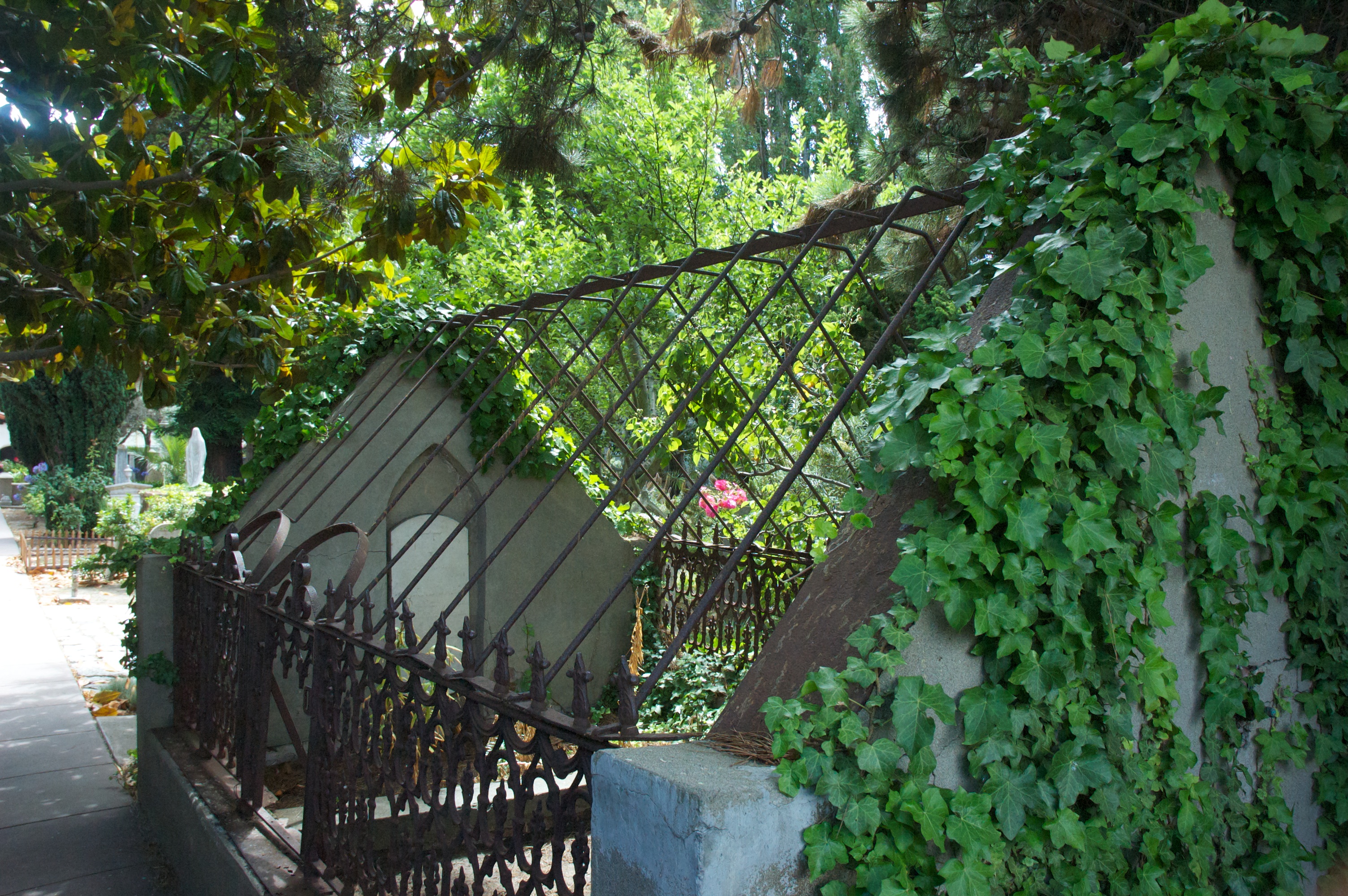 The final portion of the mission tour is the beautifully restored cemetery. As it exists today, the cemetery is only a small portion of the original. What remains are graves with well-restored monuments and lush landscaping giving the grounds a serene but gothic atmosphere. It is also notable that, excluding the Presidio, it is the only cemetery in San Francisco. Burials were banned in San Francisco at the turn of the twentieth century. The graves in all other cemeteries were exhumed and moved to Colma a few miles south.