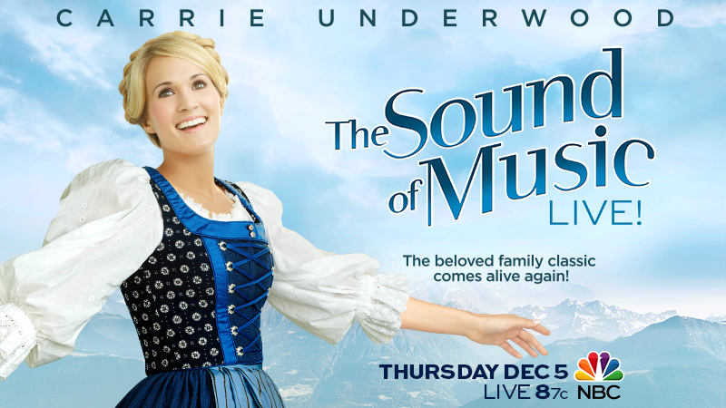 ATLANTA, Nov. 13, 2013 – THE SOUND OF MUSIC, one of America’s most beloved musicals, will air live at 8 p.m. ET Thursday, Dec. 5 on NBC. The show features an all-star cast that features country music star Carrie Underwood, Stephen Moyer (“True Blood”) and Christian Borle (“Smash”), among others.