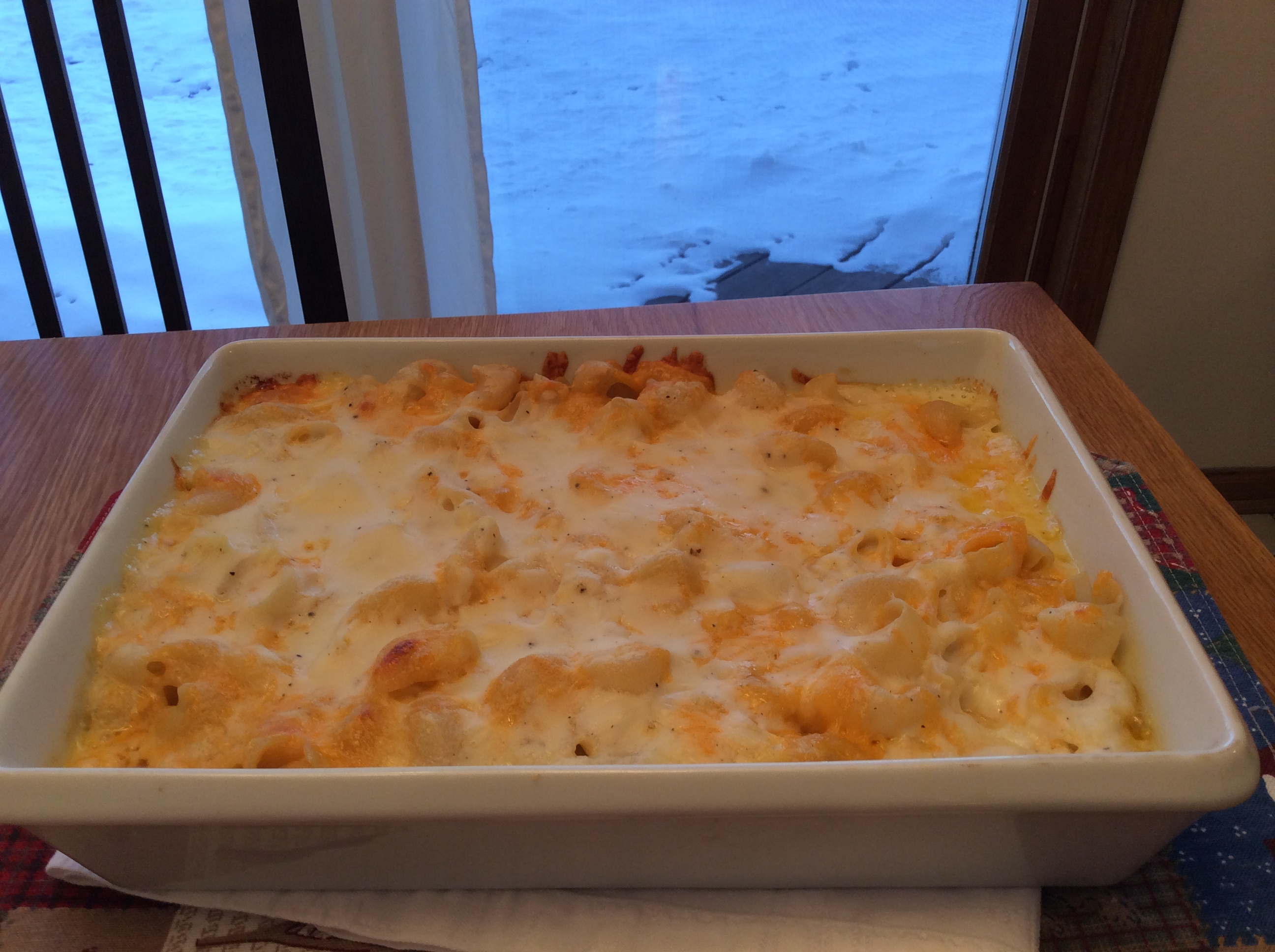 Weighing in with a pound of cheese, a quart of milk, and a stick of butter, this baked macaroni and cheese is sure to keep you going on a cold Wisconsin day (or if you haven’t slept since you brought your darling baby home from the hospital … twelve weeks ago). Yields six very generous adult servings with leftovers.