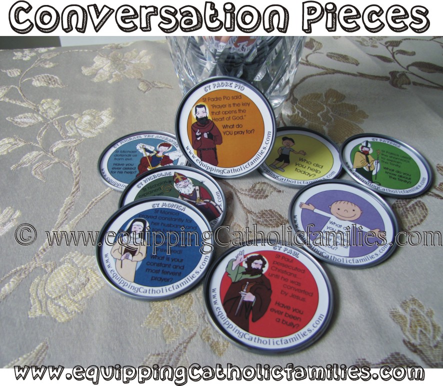 We also have the Catholic Conversation Pieces with Saints and Sacraments, with 144 illustrated conversation prompts, helping us to delve into our mentors in the Catholic Faith as well as our grace-filled Sacraments! This kit also includes the popular Sacrament Toppers to celebrate Sacraments year after year!