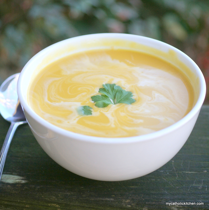 I love all squashes. Most notably this winter squash soup is chock full of squash and other vegetables, yet it is so creamy and delicious you can hardly tell it is good for you. Not to mention that the recipe is pretty easy. Just roast and puree in the food processor or blender. If you use 2% milk instead of cream you can make it really healthy.