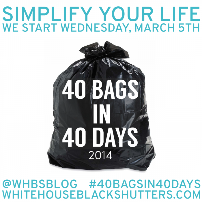 Which is what makes 40 Bags in 40 Days so perfect. The idea is simple enough -- to clear the clutter from our lives and divest ourselves of 40 bags of non-essential earthly goods over the course of Lent. This is, for many of us, not entirely unselfish. I would love to clear 40 bags of junk and/or extraneous items from my house. Some of it will be as simple as finally getting those clothes to consignment or those books to the library book sale. Some of it will require that I go through my things and separate the wheat from the chaff, so to speak -- a task I always mean to do, but never seem to get to.