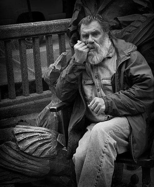 It didn't take long before we started meeting street people. It seemed to me that as we handed out clothes and food to one person, we attracted more people. Most of them asked for socks and hats and my supplies were quickly depleted.