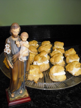 I think his feast day always falls during Lent. This is one of a handful of feast days that we can take a break from our Lenten sacrifices and indulge in some dessert! It is traditional to serve profiteroles--otherwise known as cream puffs. Some bakeries will sale these around his feast day, but they are also easy to make on your own.